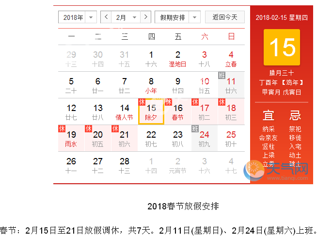 您好!首先感谢您一直以来对我司的大力支持和信任,对此我司表示衷心的感谢!现公布我司2月15日至21日放假调休,共7天。2月11日(星期日)上班,2月24日(星期六)上班